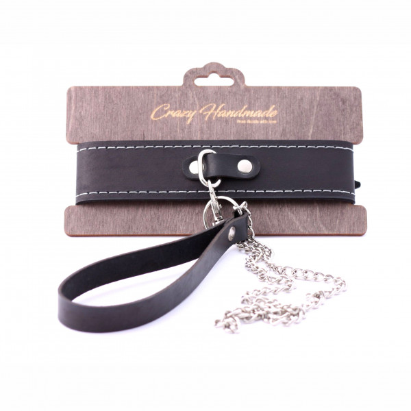 Стильный ошейник, из коллекции "Crazy Handmade" с металлическим поводком - отличный БДСМ аксессуар для самой незабываемой сессии!