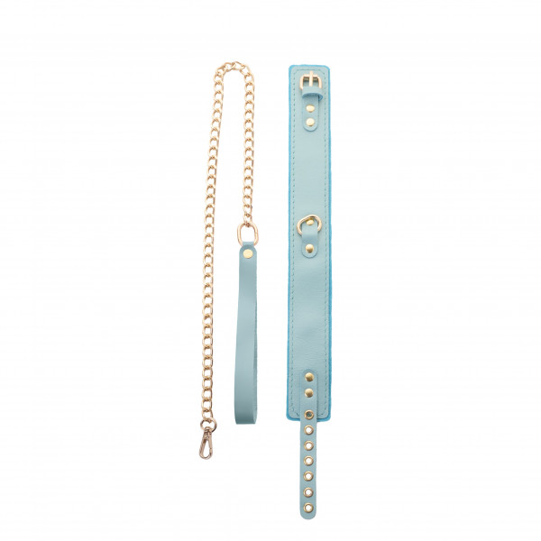 Ошейник с внутренней отделкой + поводок "Crazy Handmade" тиффани, кожа