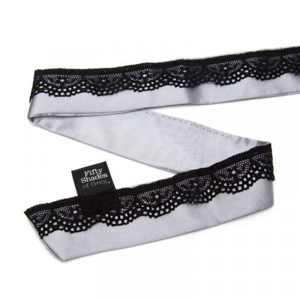 Роскошный ошейник выполнен из серого атласного материала и декорирован нежнейшим черным кружевом. Ошейник не имеет замка, его можно завязать на узел либо на бант. Металлическое D-образное кольцо позволяет крепить к ошейнику различные девайсы