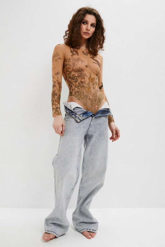 Итальянская микросетка бежевого цвета с фантазийным рисунком выглядит на теле как татуировка, что придает образу индивидуальность и выглядит максимально роскошно и необычно!