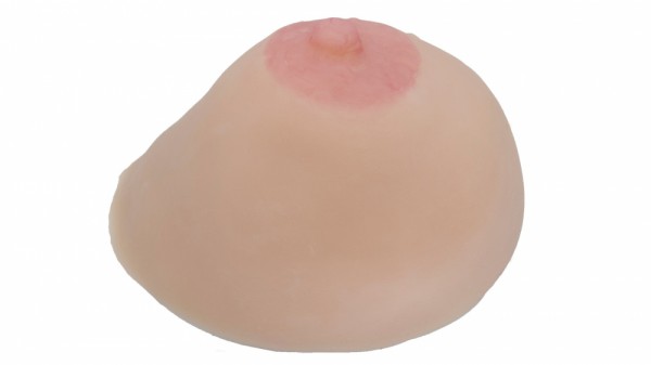 Грудь размера C. Замечательно крепится к груди, благодаря выемке изнутри и мощной присоске. Также, грудь можно вкладывать в бюстгалтер. Перед фиксацией протеза не рекомендуется наносить на тело крема, масла, дезодоранты - они могут повредить нежный материал протеза