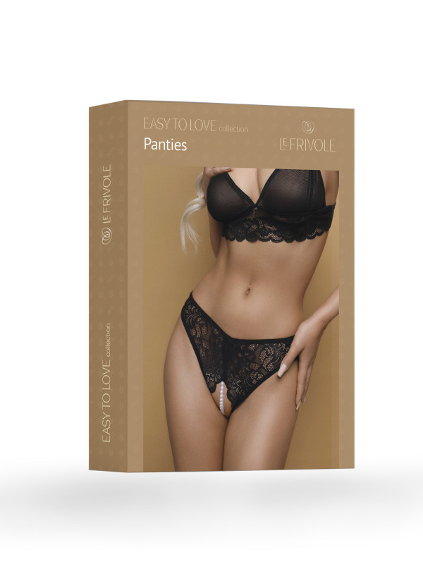 Трусики открытые с жемчужной нитью "Le Frivole" черные, L/XL